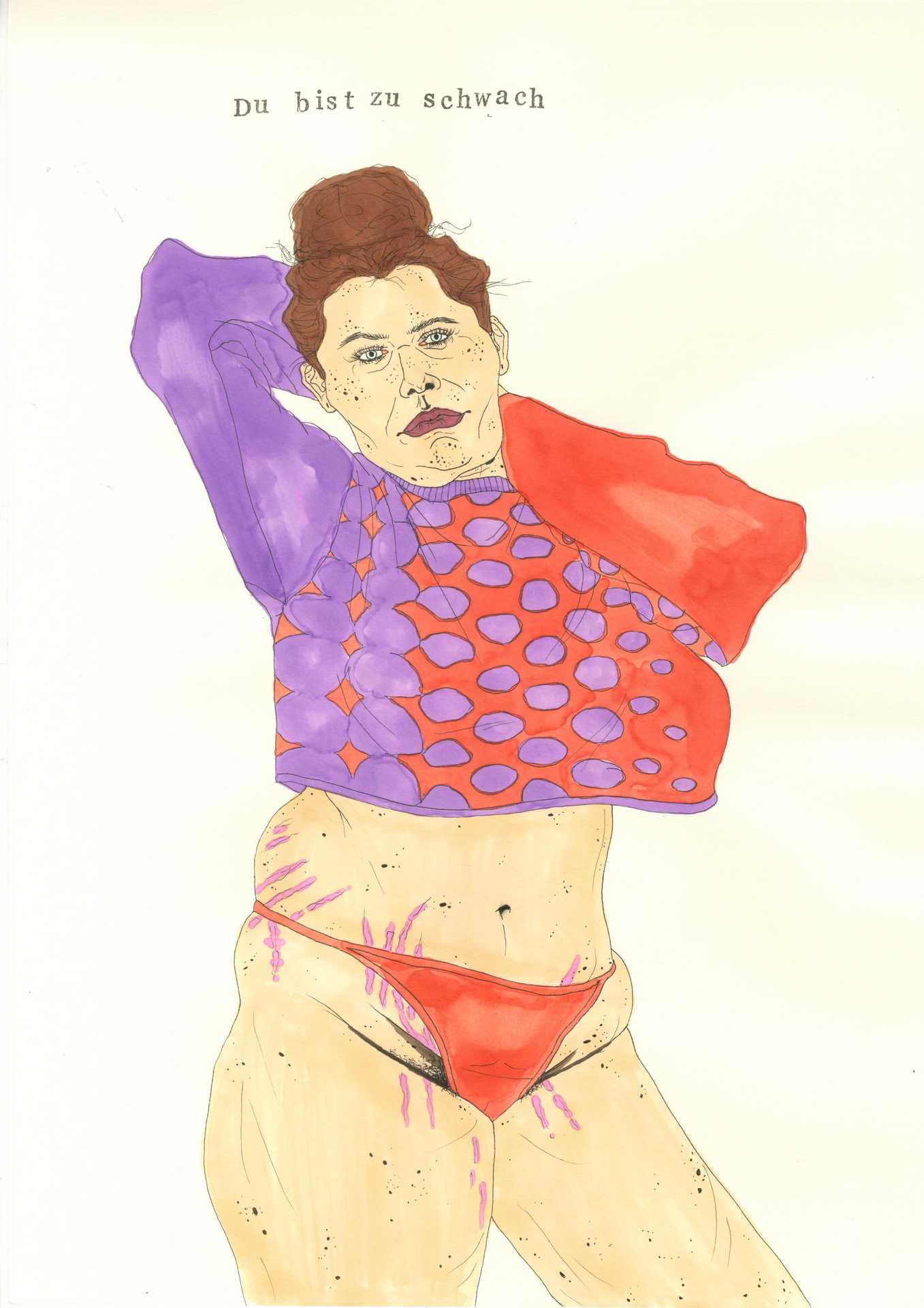 In a three-part performance, I examine aspects of being a woman in this society. A society that produces violence: