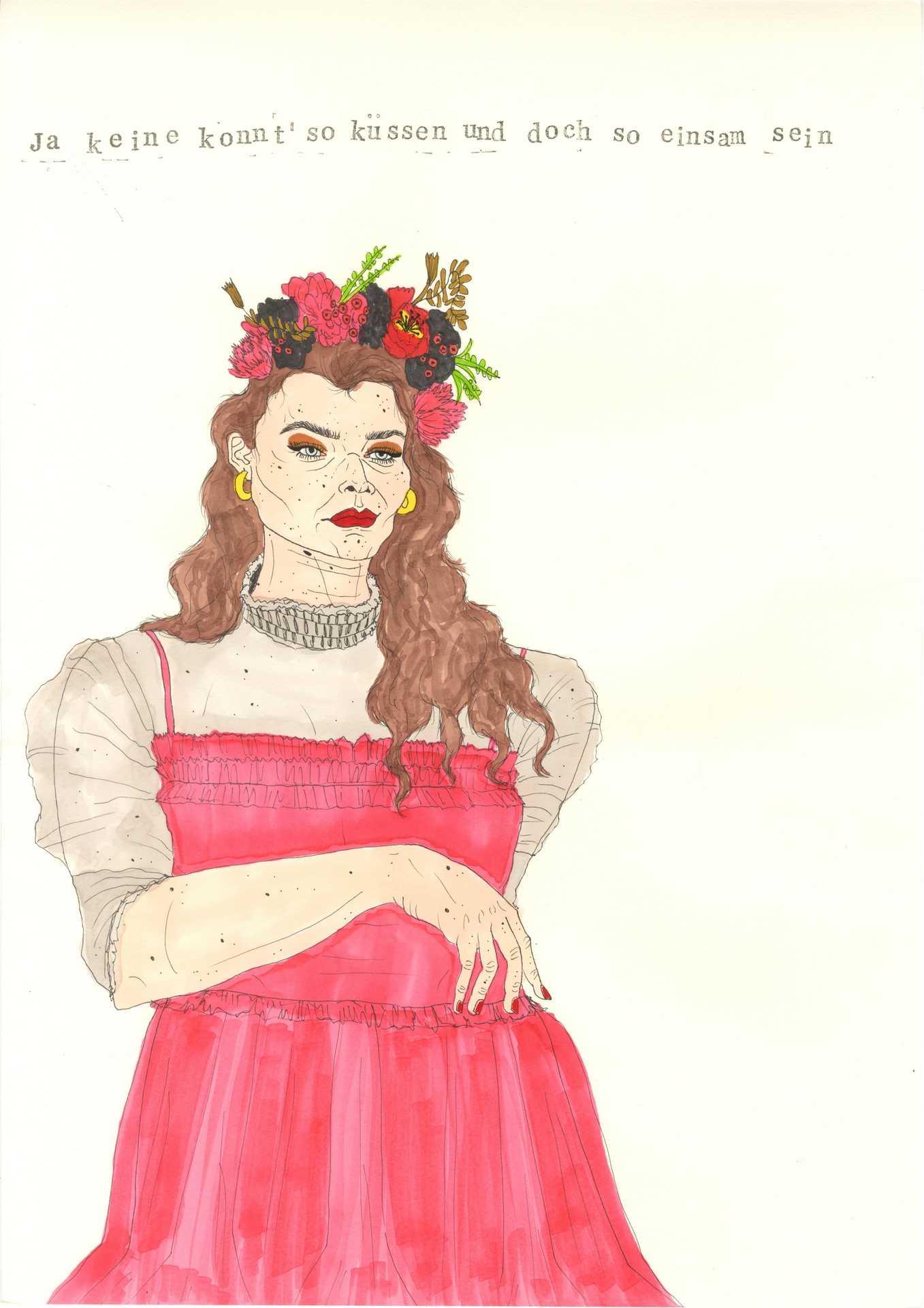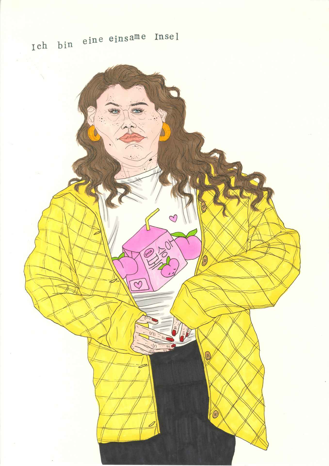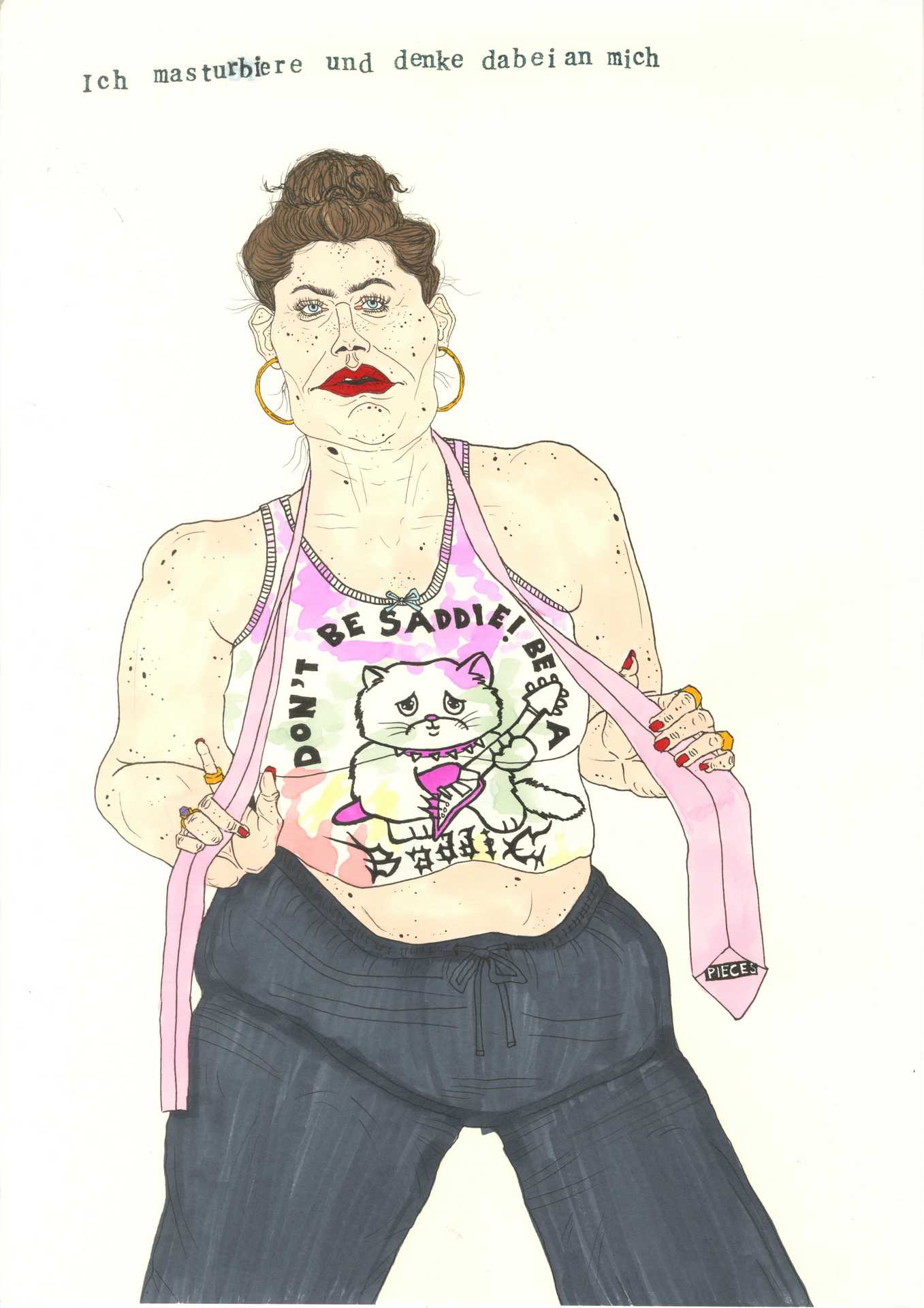 I was sent to earth. I have to stay here. This is where I'm supposed to live. Try to survive. Sometimes I have to fight like hell, but I already know that. It’s getting hot in here, almost like at home. I'm a devil in the x-th generation, an old witch, a stupid cow. And also a T-shirt girl. My horns are prosthetics and I love Kylie Cosmetics.