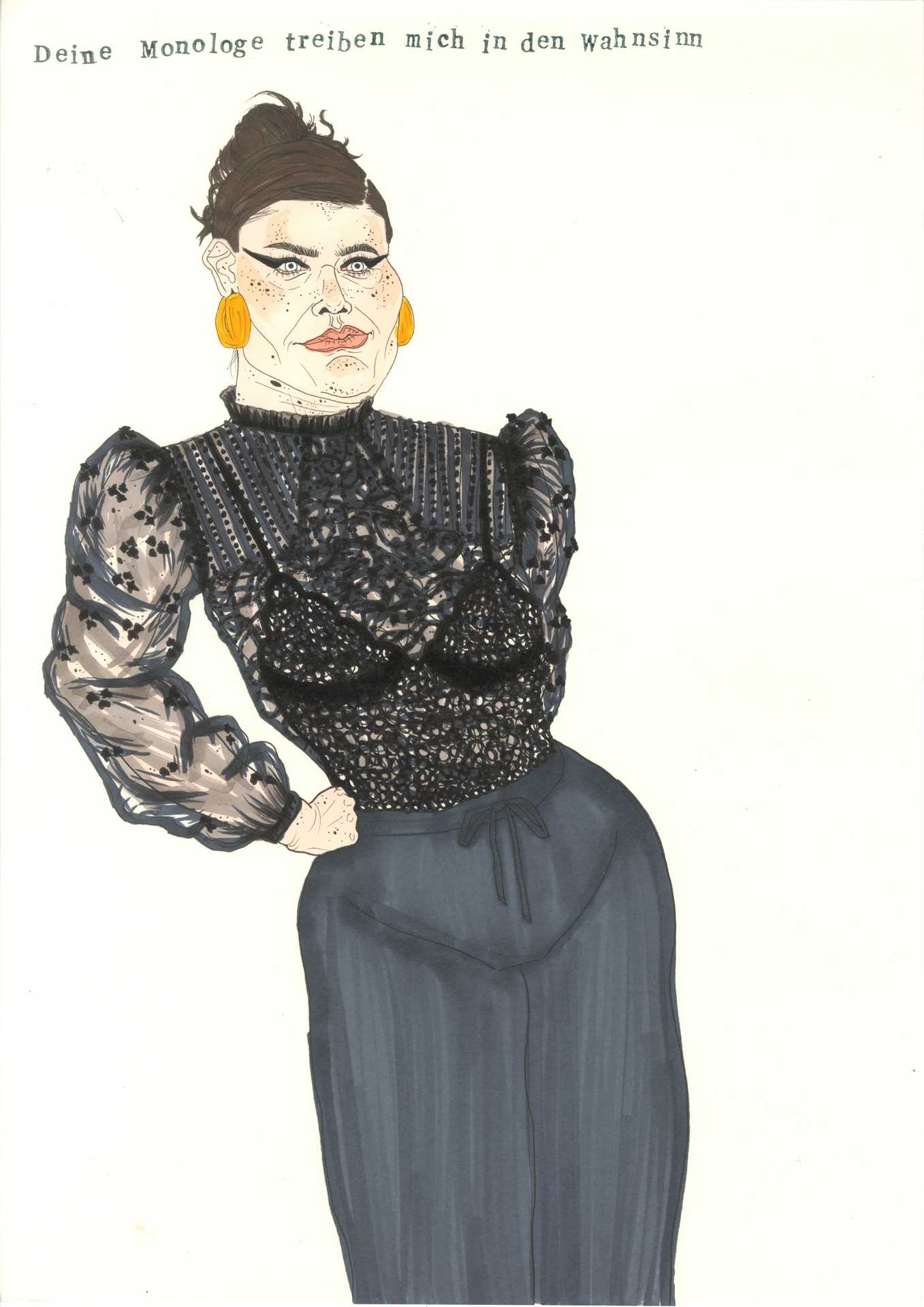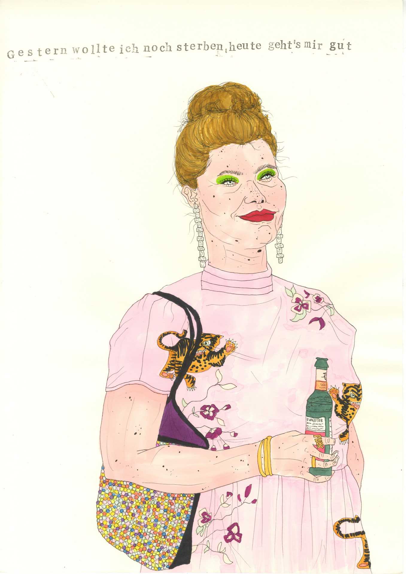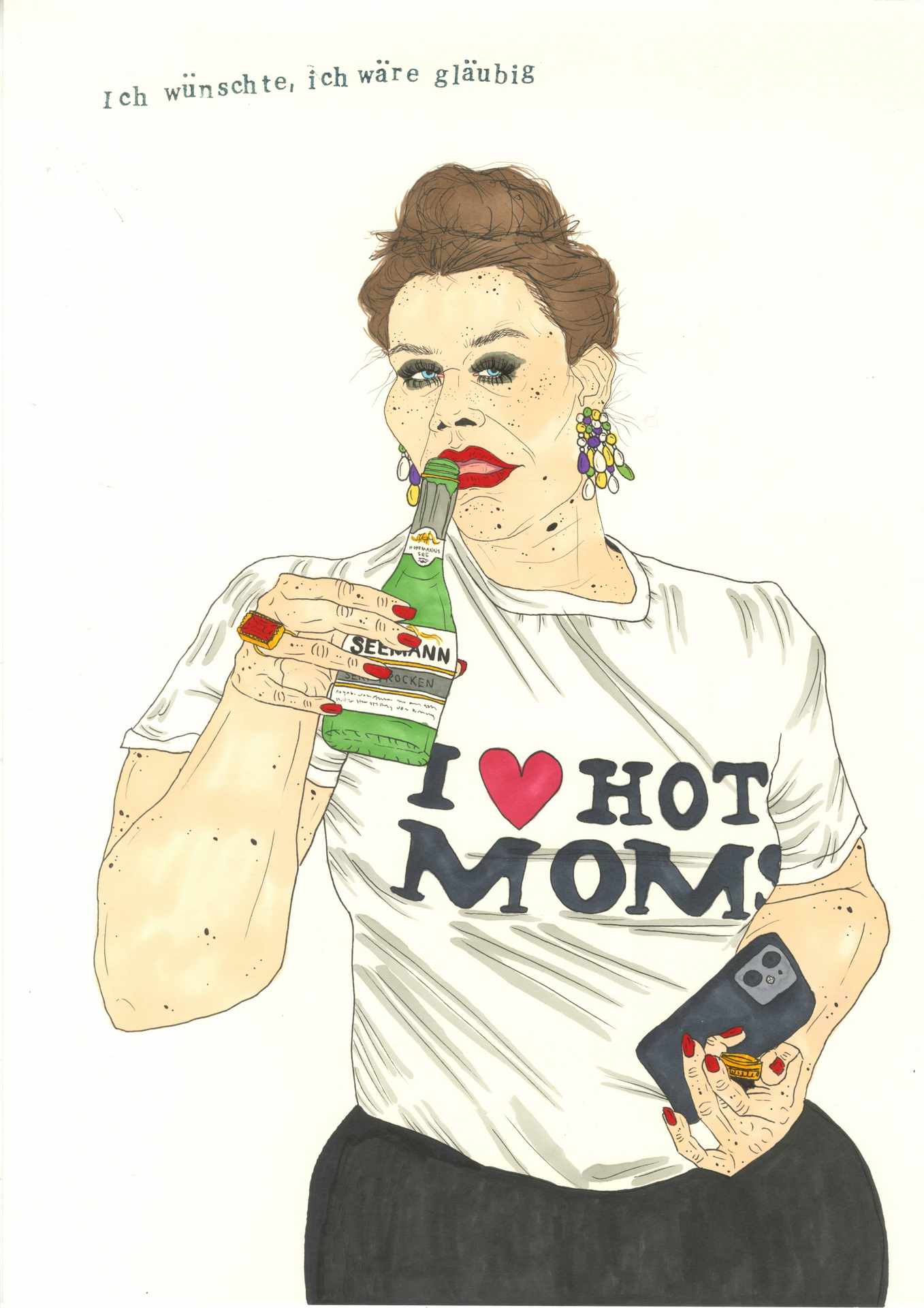 I was sent to earth. I have to stay here. This is where I'm supposed to live. Try to survive. Sometimes I have to fight like hell, but I already know that. It’s getting hot in here, almost like at home. I'm a devil in the x-th generation, an old witch, a stupid cow. And also a T-shirt girl. My horns are prosthetics and I love Kylie Cosmetics.