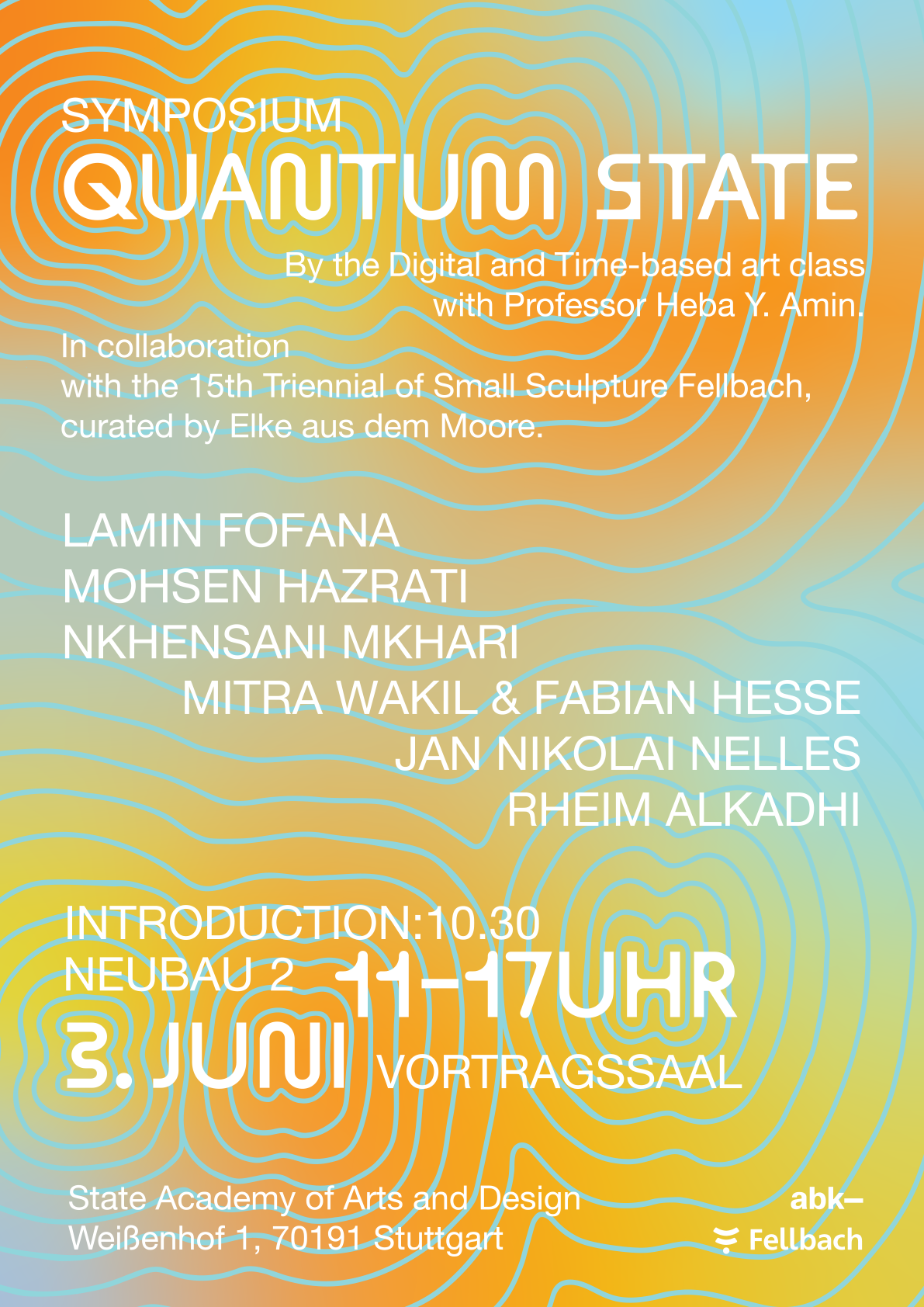 In Zusammenarbeit mit der 15. Triennale der Kleinplastik Fellbach mit dem Titel “The Vibration of Things”, kuratiert von Elke aus dem Moore, luden Studierende der Staatlichen Akademie der Bildenden Künste Stuttgart aus der Klasse für Digitale und Zeitbasierte Kunst (bei Prof.in Heba Y. Amin) am Freitag, 3. Juni 2022 Mitglieder der Akademie und die Öffentlichkeit ab 10.30 Uhr zu einem eintägigen Symposium mit den beteiligten Künstler*innen ein.