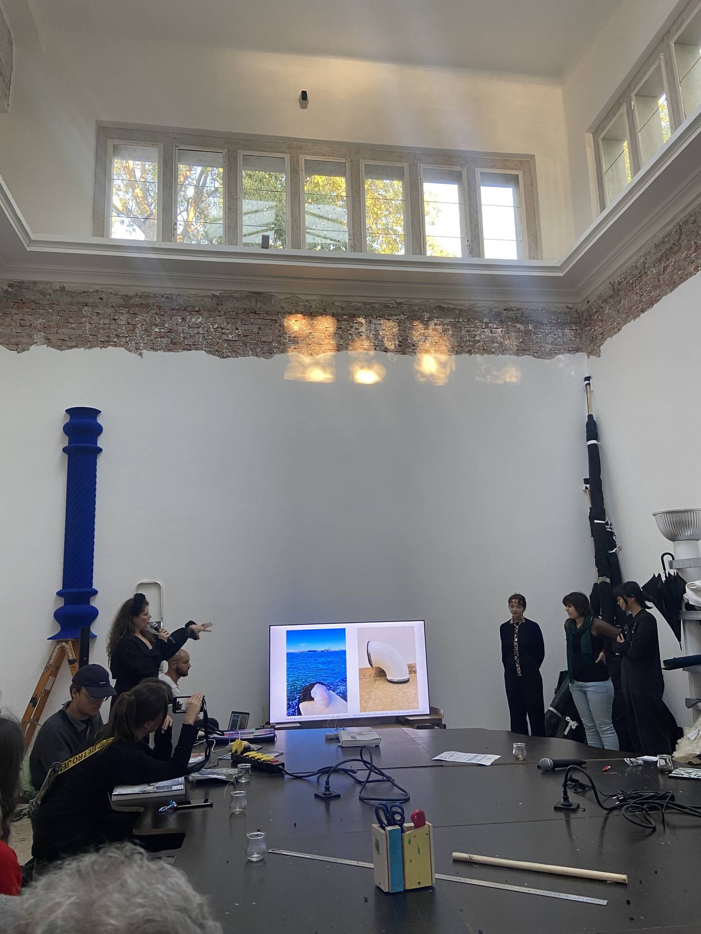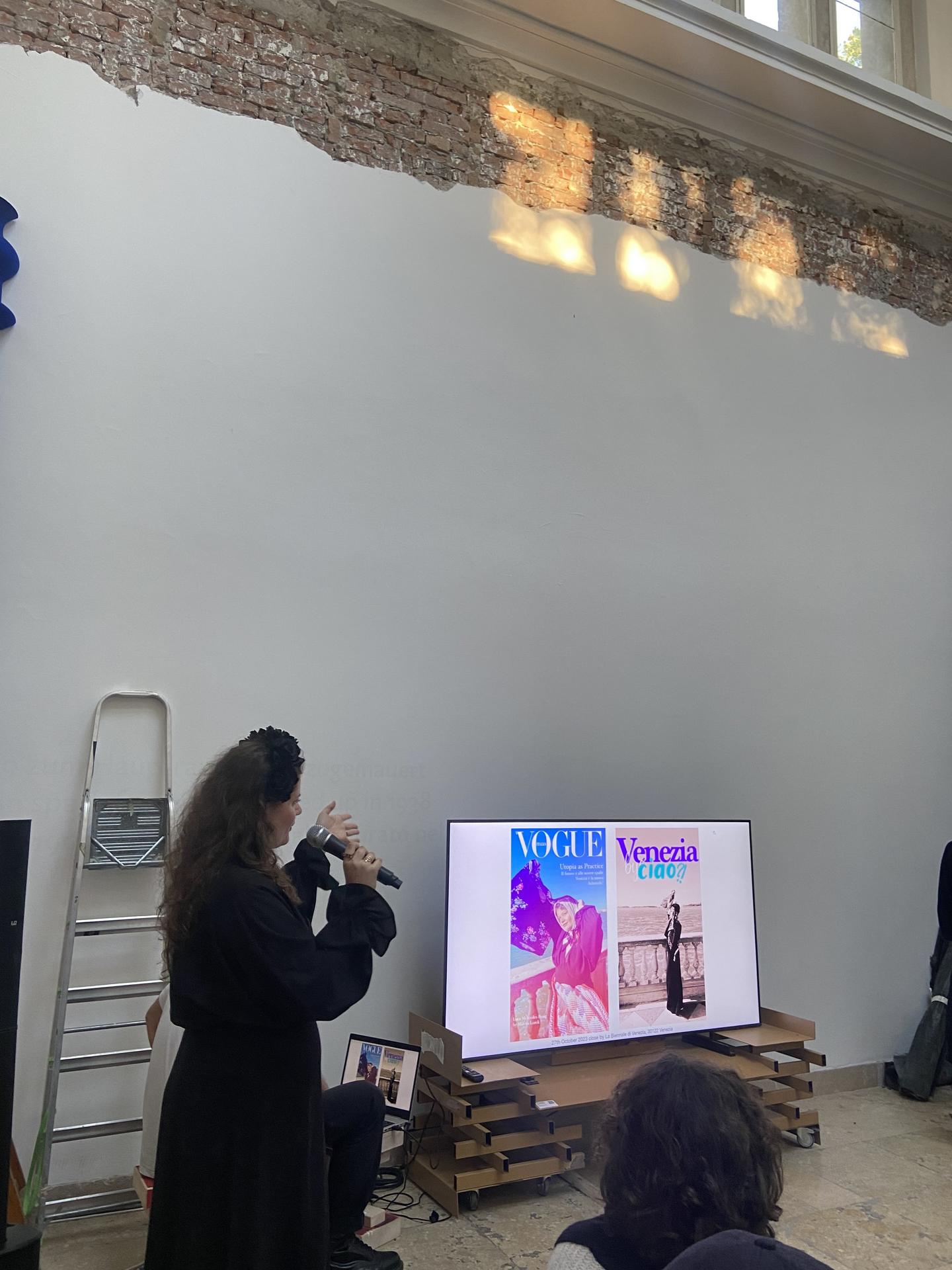 Die Künstler*innen Rheim Alkadhi, Lamin Fofana, Mohsen Hazrati, Nkhensani Mkhari, Jan Nikolai Nelles, Mitra Wakil & Fabian Hesse präsentierten ihre Position in kurzen Vorträgen, mit Eröffnungsworten der Kuratorin der 15. Triennale Kleinplastik Fellbach, Elke aus dem Moore.